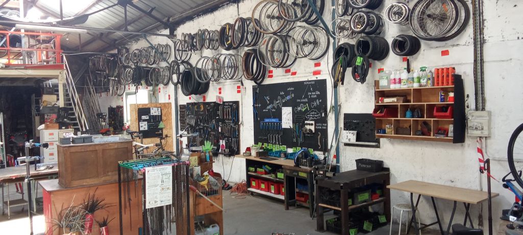 Petite compilation de photos des bénévoles en action. Ou comment nous avons transformé un hangar abandonné en atelier vélo participatif !