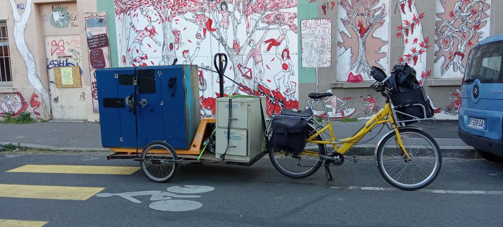 Et c’est parti pour le déménagement du matériel de chantier, à vélo cette fois-ci !