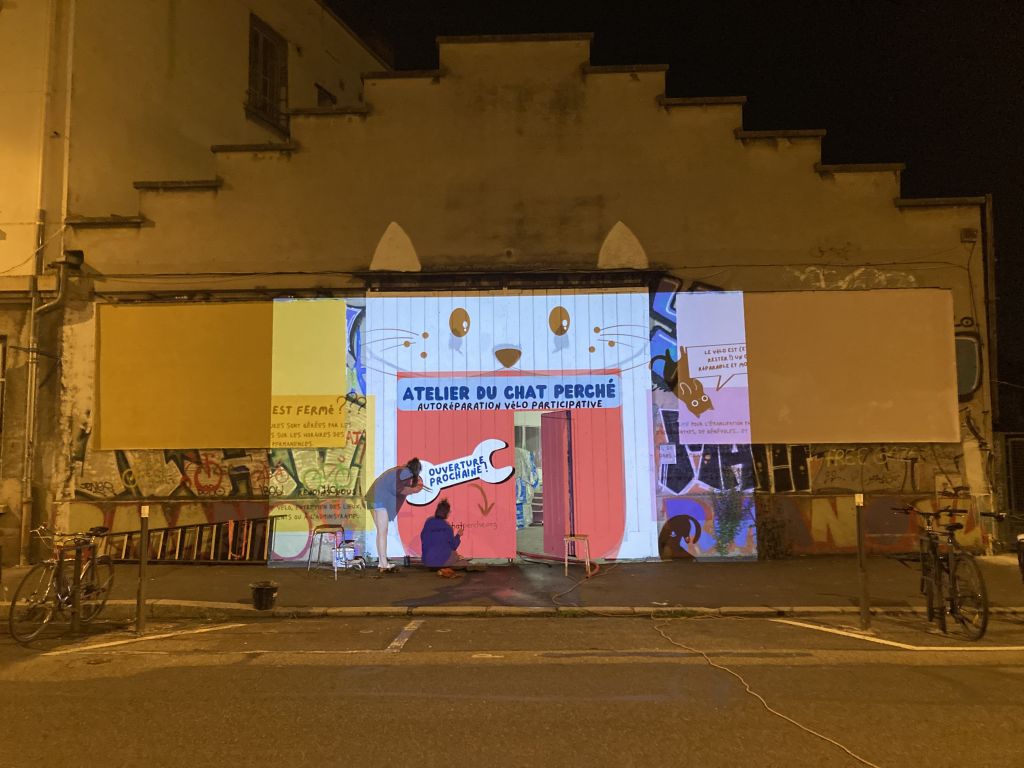 Décoration de la façade by-night pour les besoins du vidéoprojecteur
